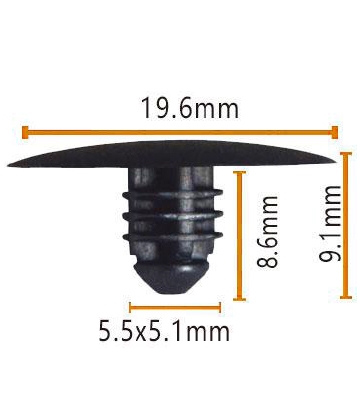 Bahagian atas skru ini direka untuk menjadi rata, dengan diameter 19.6 mm dan panjang 8.6 mm, memastikan yang sesuai dengan semua bahagian kenderaan. Bahagian yang dibangkitkan di tengah adalah diameter 5.5 mm dan ketinggian 5.1 mm. Reka bentuk yang unik ini bukan sahaja meningkatkan kesan pengetatan skru, tetapi juga menjadikan proses pemasangan lebih lancar. Bahagian bawah adalah asas bulat rata dengan diameter 9.1 mm, yang memberikan sokongan yang stabil untuk skru. Saiz keseluruhan ditandakan dengan jelas, yang mudah untuk anda mengenal pasti dan memilih dengan cepat apabila menggunakan.
