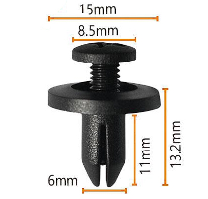 Diameter kepala pengikat ini adalah 15mm, ketinggian keseluruhan adalah 13.2mm, lebar bahagian bawah adalah 8.5mm, panjang skru adalah 11mm.Ia sesuai untuk menetapkan panel dalaman, bahagian petak enjin dan trim badan Honda.