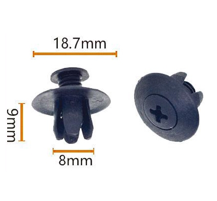 Dengan diameter 18.7 mm, ia mempunyai penonjolan yang unik di bahagian atas, yang direka untuk bahagian atau peristiwa besar yang memerlukan daya pengikat yang lebih kuat. Saiz yang tepat dan struktur yang dioptimumkan memastikan padanan sempurna dengan pelbagai bahagian kereta, sama ada panel dalaman, trim luar atau komponen besar lain, ia dapat dengan mudah mengatasinya.