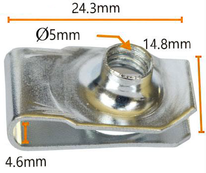 Pengikat ini mempunyai dimensi keseluruhan yang tepat, berukuran 24.3mm lebar dan ketinggian 14.8mm, memastikan lancar dengan titik pengikat pada kereta anda. Di samping itu, panjang 4.6mm yang disebutkan di bahagian bawah imej boleh merujuk kepada dimensi kritikal bahagian tertentu, seterusnya menekankan profesionalisme dan ketepatan produk.